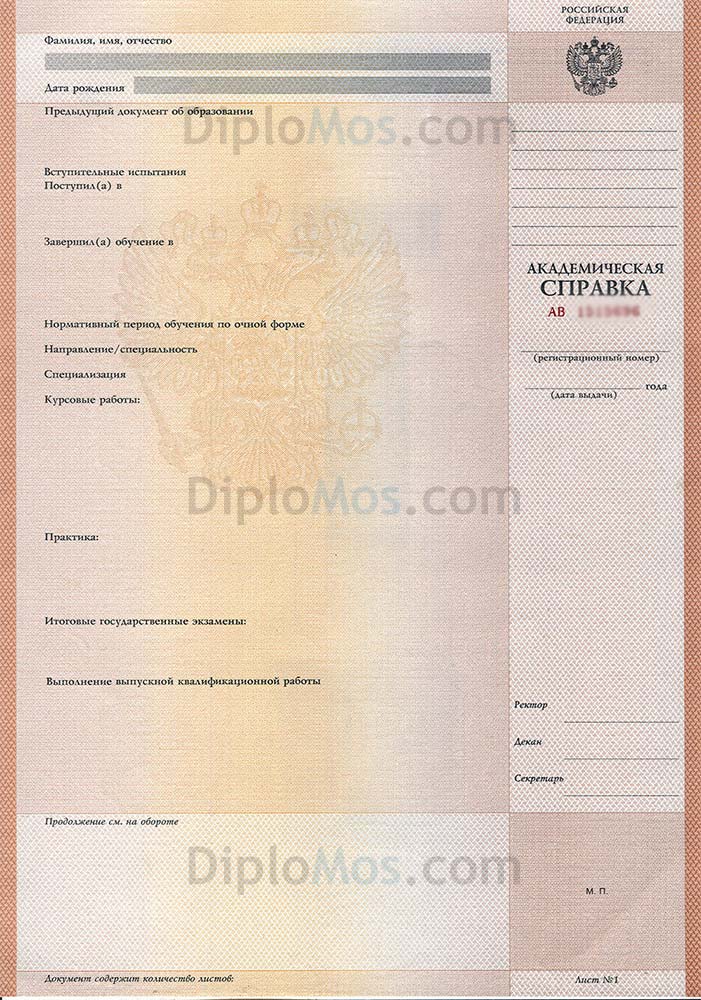 | Чистый бланк диплома | от 10 000 | |