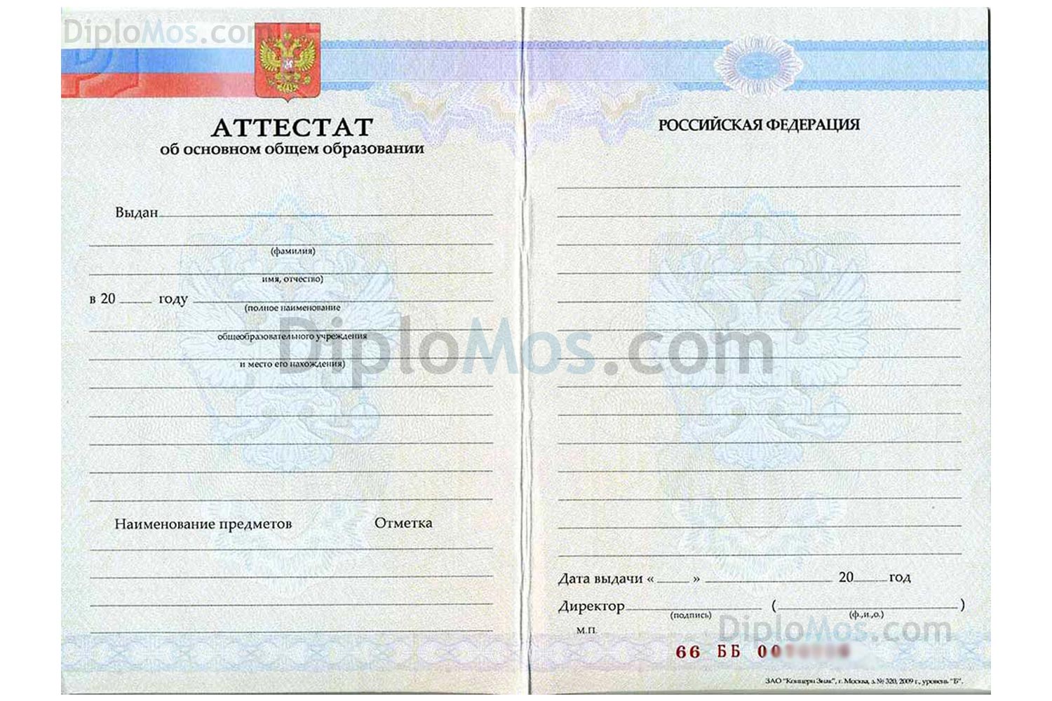 | Аттестат за 9 класс 2014-2025. Полный комплект, аттестат в наличии. Гознак |