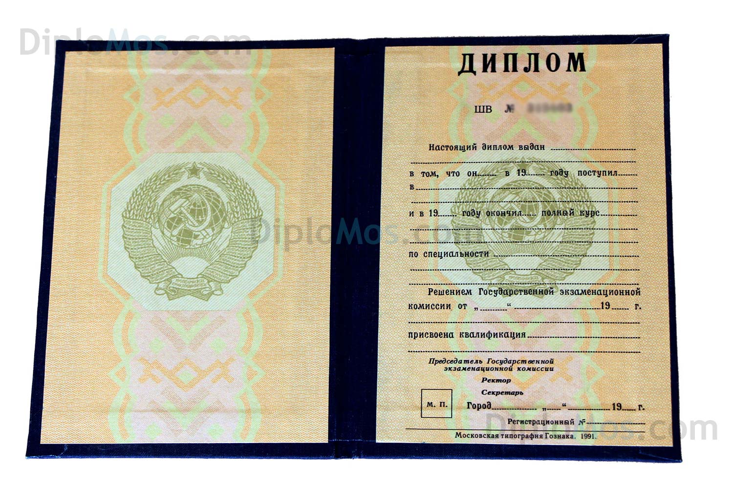 Диплом о высшем образовании СССР с 1970-х по 1996. Полный комплект, диплом в наличии. Гознак |